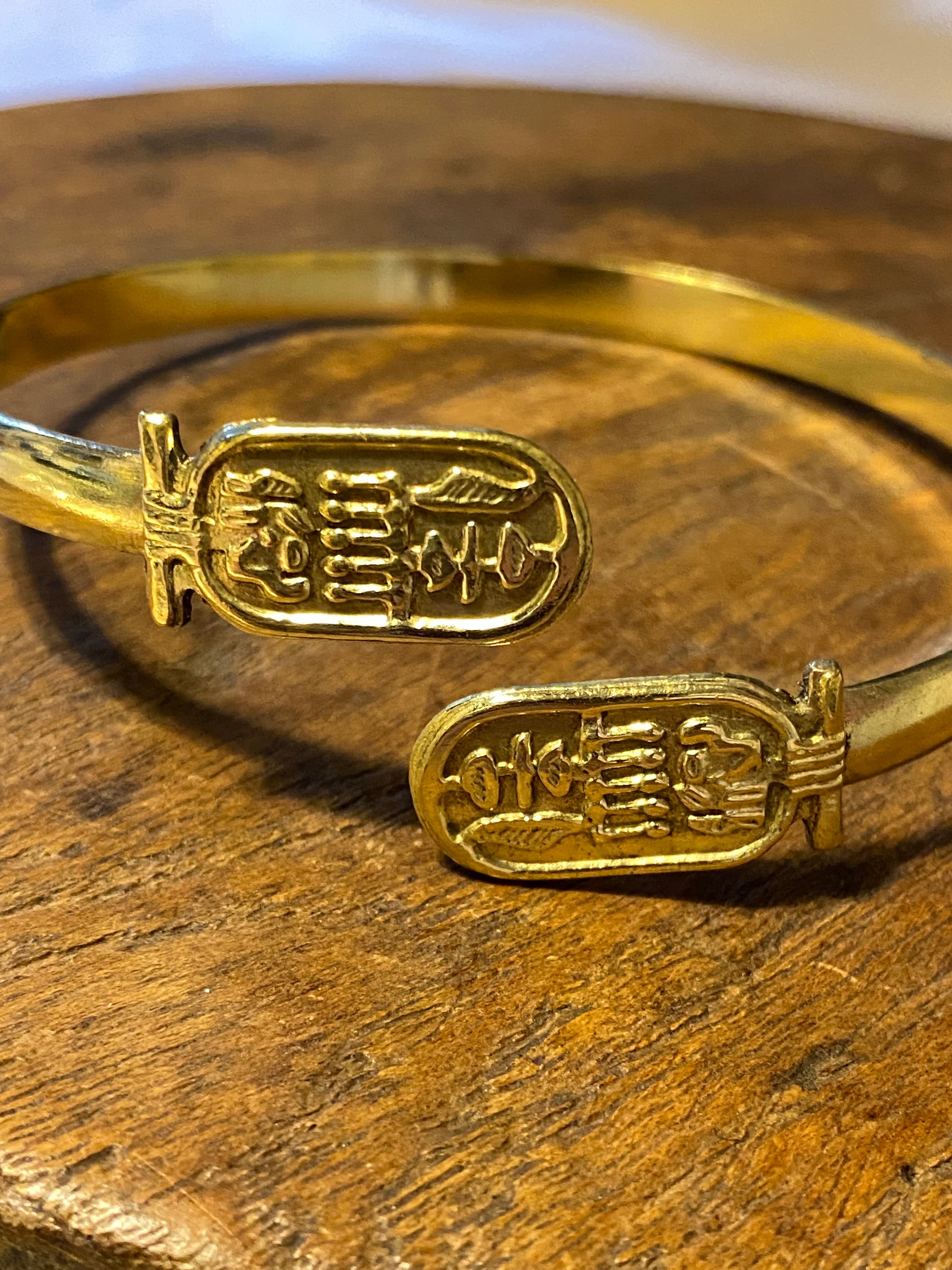 古代エジプトのカルトゥーシュ(王名表)の真鍮のブレスレットです。古代エジプトの壁画にこのデザインがあればファラオの名前が入っている印です。
