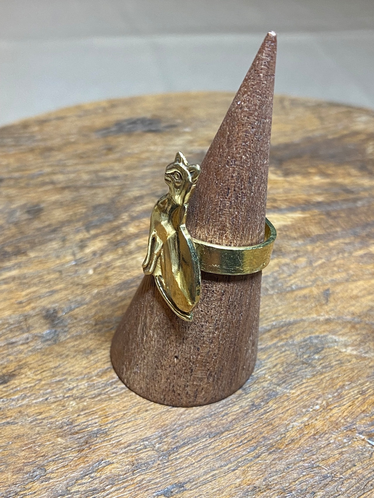 こちらのリングは、そのバステト神の姿をモチーフに、エジプトの職人が一点ずつ手作業で仕上げた真鍮リングです。